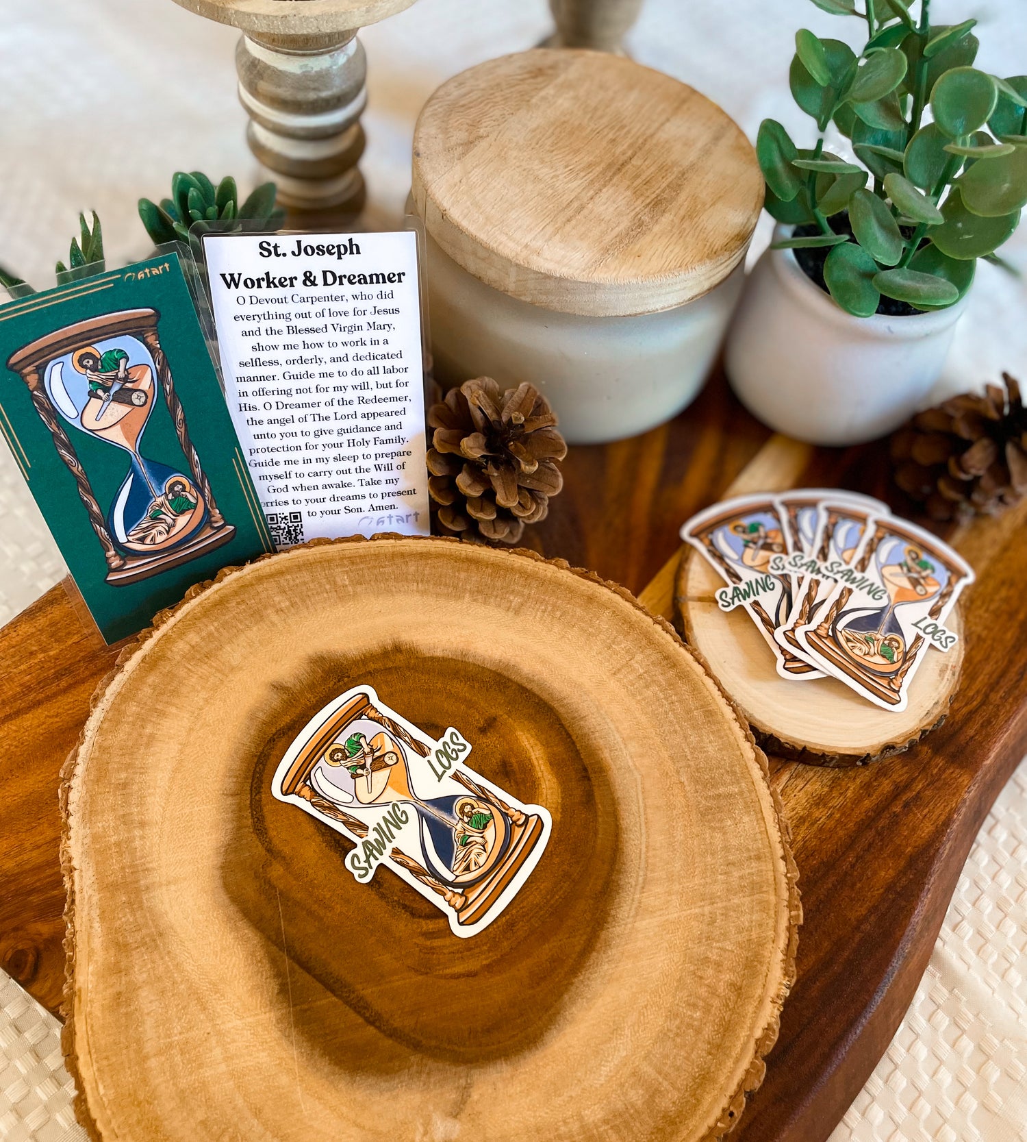 Stickers and Prayer Cards designed for the Saints